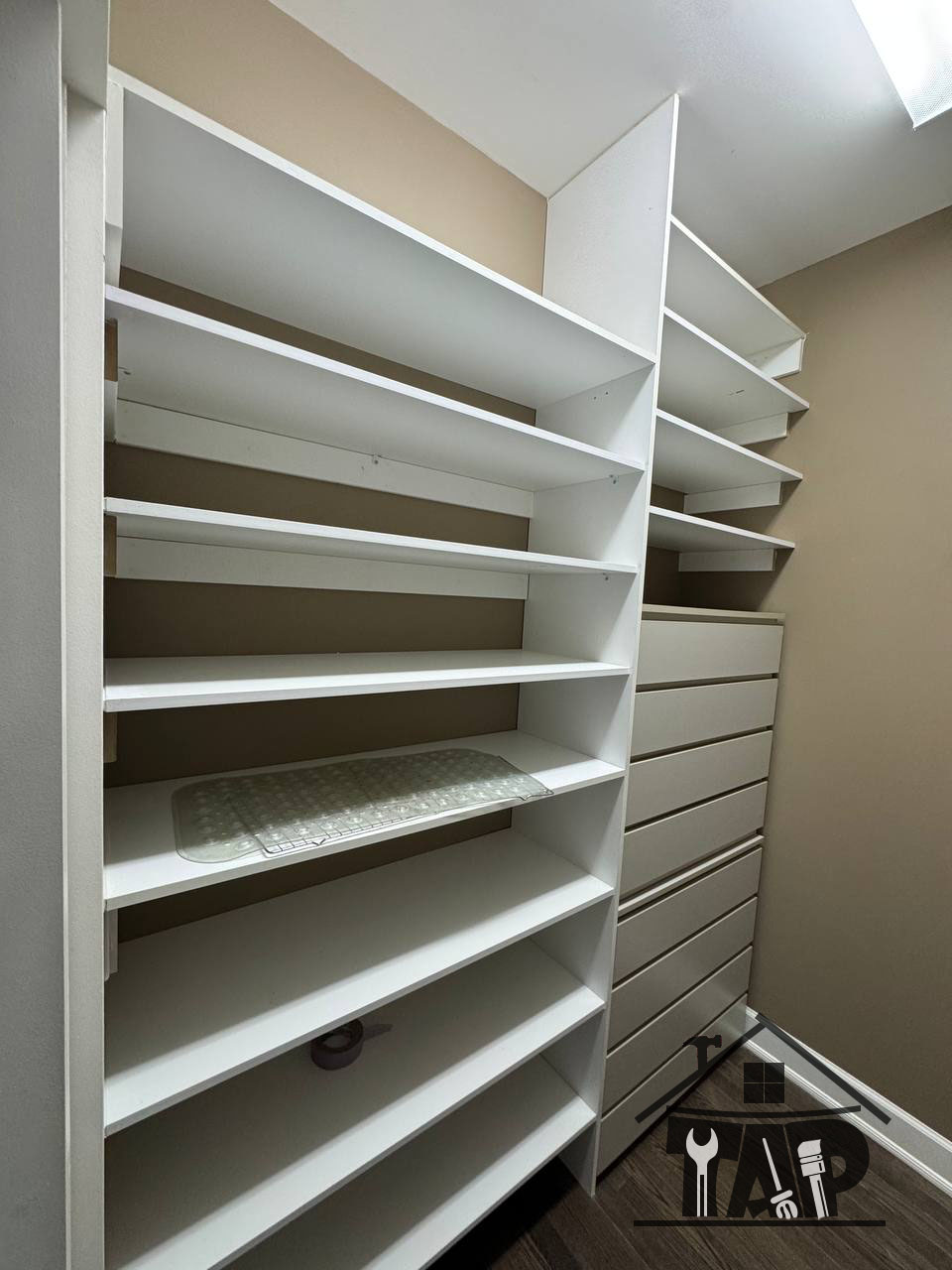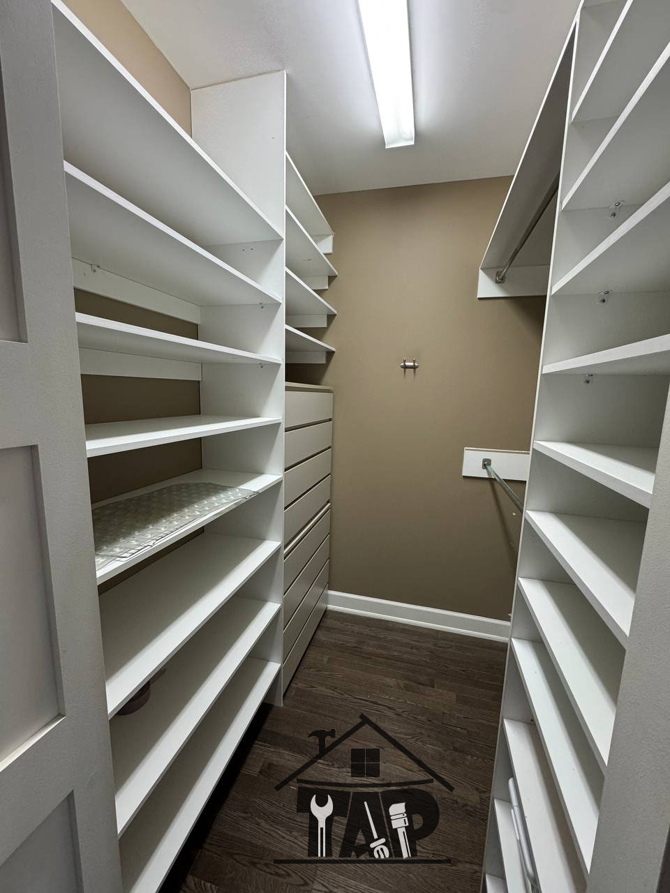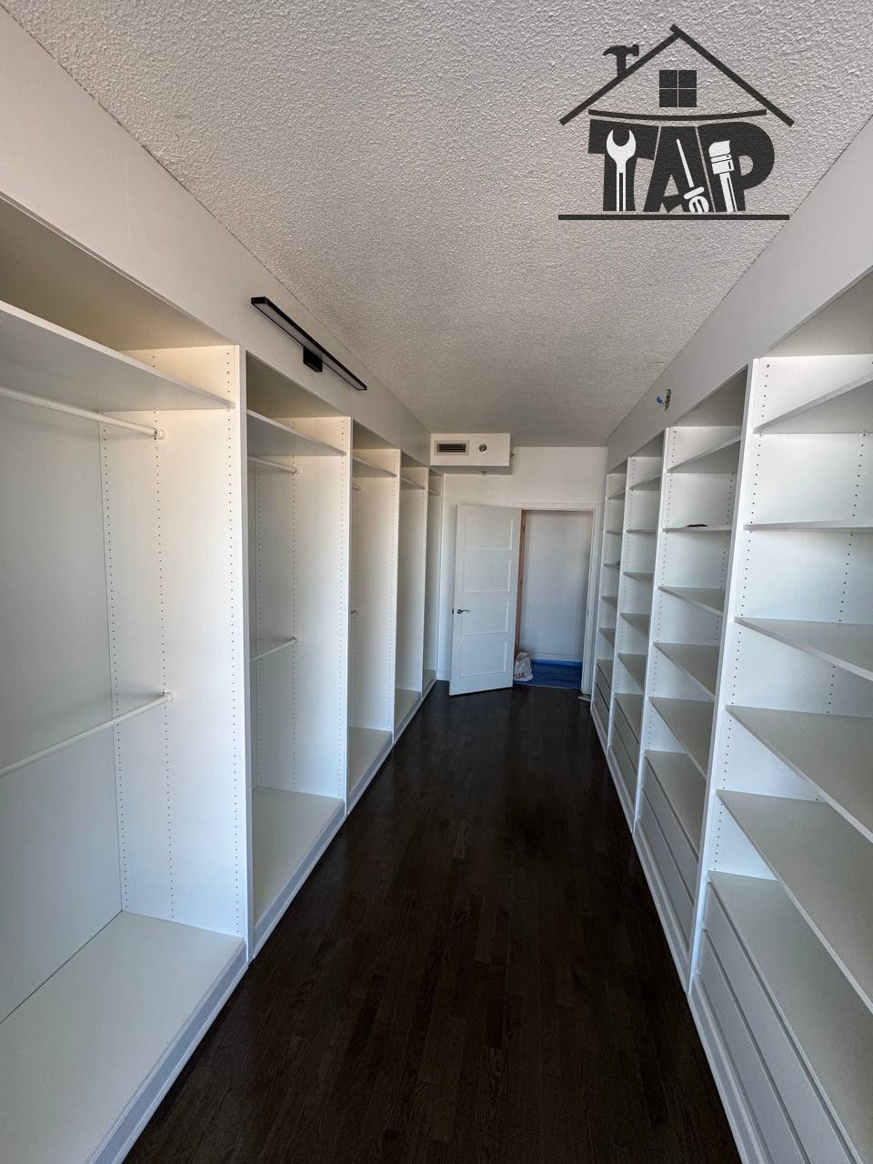 The final stage of this project was dedicated to lighting installation, which played a key role in completing the overall design. Proper lighting enhanced visibility, highlighted design details, and added a refined and luxurious feel to the walk-in closet.